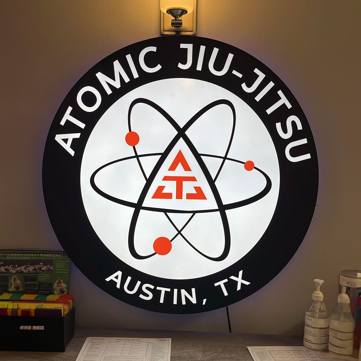 The central element of the logo is a symbolic triangle, a powerful shape in Jiu-Jitsu philosophy, signifying strength, balance, and unity. Within this triangle, I artfully incorporated the initials “AT” to represent Adrian Trevino, the dedicated Head Instructor and owner of Atomic Jiu-Jitsu. This design not only pays homage to traditional Jiu-Jitsu symbolism but also personalizes the brand, emphasizing the leadership of Professor Adrian.